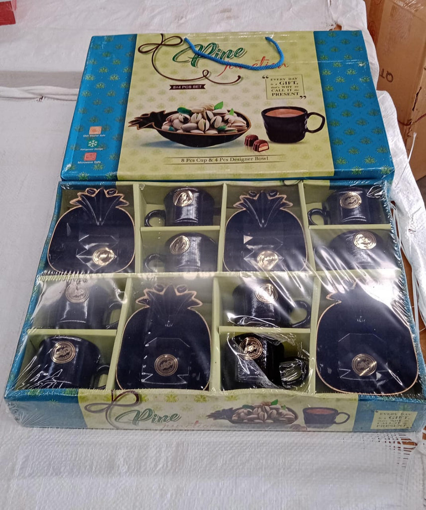 Pine Junction Ceramic Tea / cups / Mug Set With Pineapple Shape Serving Bowl Milk Cup, Coffee Cup, Tea Cup, Breakfast Cup, Drinking Mug or Outdoor for Household, Gift for Birthday, Wedding Party (12 Pcs set)